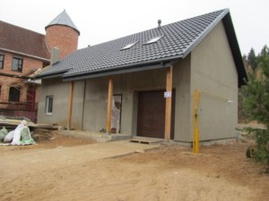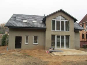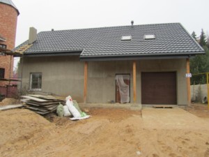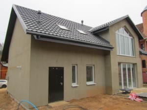Дом покрыт модульной металлочерепицей Будмат Венеция. Для лучшей освещенности помещения в кровлю смонтированы мансардные окна Факро. Подшивка свесов – софит. Утепление кровли каменной ватой Парок. Год постройки 2016. Работу выполняли 3 кровельщика втечение 5 недель.