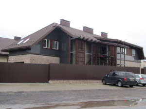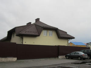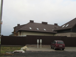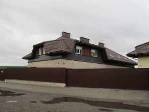 Кровля на офисном здании делалась «с нуля». Кровельный материал — цементно-песчаная черепица Забудова. Работы проводились в несколько этапов: сначала стропильная система, гидроизоляция, обрешетка и черепица. Вторым этапом после фасадных работ выполнили подшивку свесов и водосточную систему. Утепление мансардного этажа утеплителем Парок выполнили после высыхания стропильной системы. Работы проводились в 2013г., на объекте работали 4 кровельщика. Сроки выполнения работ — 2,5 мес.